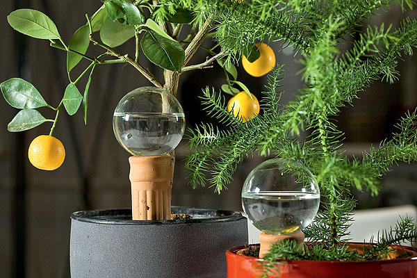 Как поливать комнатные цветы при помощи подручных средств? Для начала хорошо увлажните почву. Возьмите стандартную пластиковую бутылку и при помощи накаленной иглы сделайте два отверстия (на горлышке в пробке и в самом дне). Наполните бутылку и поместите ее в горшок горлышком вниз. Таким образом, вода будет медленно вытекать по капелькам, постоянно поливая растение. Описанный способ полива больше подойдет крупным цветам.
