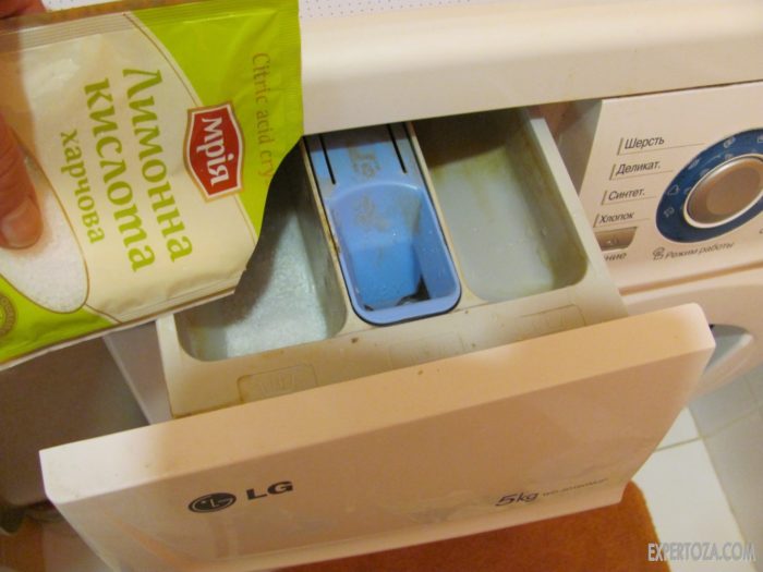 засыпаем-лимонную-кислотуПочти в каждом доме есть такая помощница как стиральная машина. Она весьма проста в использовании, не требует от владельцев никаких усилий. Достаточно залить кондиционер, засыпать порошок в специальный отсек, включить нужный цикл стирки и можно ждать окончания процесса, занимаясь своими делами. Но даже, казалось бы, такая простая бытовая техника требует должного ухода за собой.