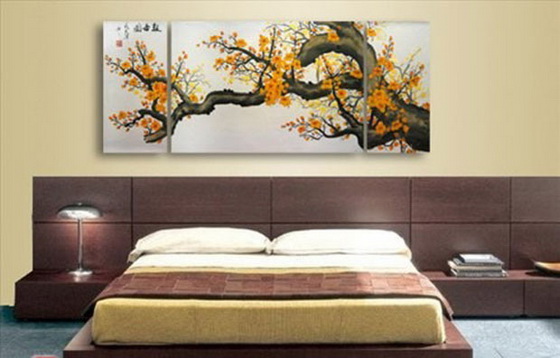 3. В ванной комнате с терракотовыми стенами уместно будут выглядеть панно и вышитые картины.