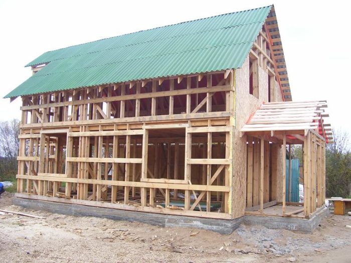 В свою очередь каркасные дома стали популярны, прежде всего, из-за своей быстровозводимости. Несмотря на скорость возведения этих домов, их строительство требует глубоких знаний и профессионализма. В качестве основы для строительства используется каркас из натуральной древесины. В качестве утеплителей применяется либо минеральная вата, либо монолитный пенобетон, возможно также использование пенополиуретана и пенополистирола. В качестве материала для обшивки выступают фанера, цементно-стружечные плиты или OSB.