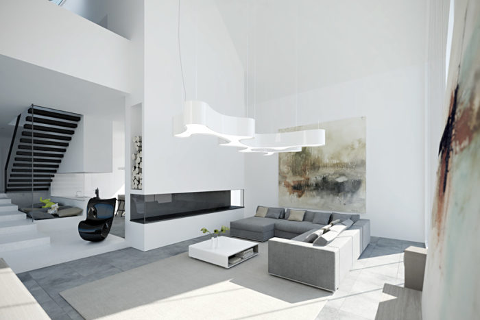 стиль минимализм в интерьереЛюбителям чистых и просторных помещений  стиль минимализм подойдет больше всего. Чем меньше вещей – тем лучше. Вся отделка дома выдержана в сдержанных тонах. Акцент, как правило, делается на какой-то одной стене или зоне в квартире. Но при всей кажущейся простоте, все вещи стильные, дорогие  и современного дизайна. Поверхности строгой формы, выразительные, интерьер дополняется яркими акцентами, например, дизайнерскими стульями и столом, ярким постером.