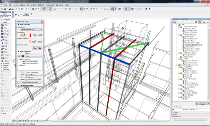 В archicad 14 также имеется режим позиционирования курсора. При активации данного режим курсор может перемещать строго с определенным шагом. Перемещения курсора ограничивается вершинами конструкторской или шаговой сеткой. При включенной привязке к сетке перемещение по чертежу осуществляется в зависимости от заданного шага. Также данное окно позволяет выбрать вариант привязки к сетке, но более удобно это будет сделать с помощью масштабной линейке.