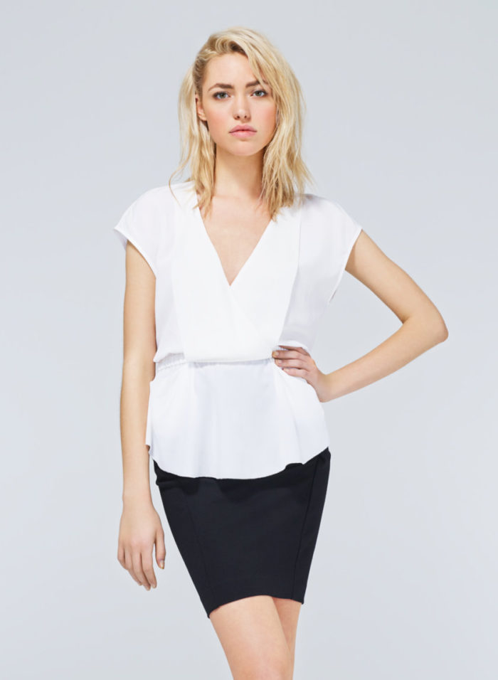 Края полочек укрепите флизелином. Для этого их нужно загнуть и отутюжить, проложить вставкой и наметать. Далее нужно наметать плечевые и нагрудные выточки. После этого изделие рекомендуется примерить, если все устраивает, и выточки находятся на месте, их следует женская рубашка без рукавовотстрочить и проутюжить. Для этого каждую выточку нужно хорошо смочить и вытягивая загнуть нижние и крайние стороны вниз и вбок.