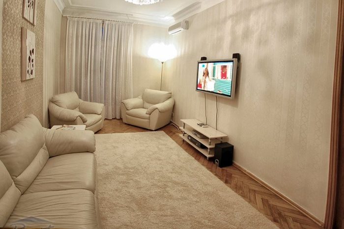 Изначально необходимо приобрести систему кондиционирования, мощность которой позволяет поддерживать заданную температуру во всем помещении. Далее приступаем к выбору места для установки. Настенный кондиционер лучше всего монтировать в большой комнате. Из нее холодный воздух будет равномерно распределяться по всей квартире. Если установить систему кондиционирования в прихожей небольших габаритов, то это не обеспечит равномерную подачу воздуха в помещении. В этом случае в прихожей будет очень холодно, а поток воздуха не будет доходить до дальней комнаты.